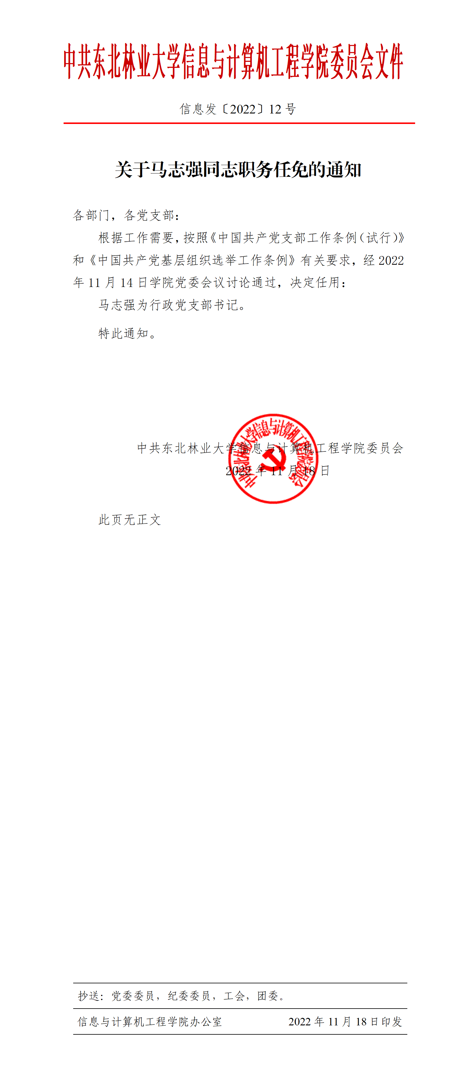 关于马志强同志职务任免的通知