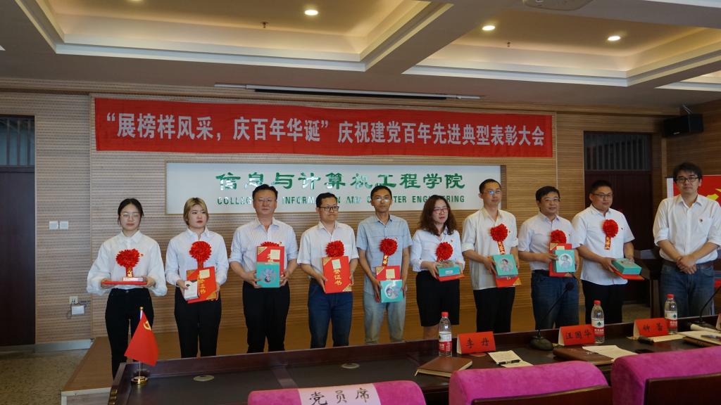 为热烈庆祝中国共产党成立100周年,深入学习贯彻习近平新时代中国特色社会主义思想,学习贯彻党的十九大精神,扎实推进党史学习教育,选树典型,表彰先进,6月25日下午,信息公司在成栋楼1016会议室召开“展榜样风采,庆百年华诞”庆祝建党百年暨“先进典型表彰大会,公司领导班子成员、全体教职工及优秀员工党员代表参加本次会议,会议由公司党委副书记、副经理庄雯培主持。