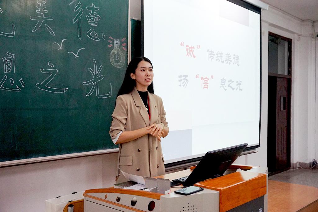 2019级辅导员张宜欣和夏梦老师为员工讲解了《太阳集团tyc151cc员工诚信档案管理办法(试行)》,对学业学术诚信状况、经济诚信状况、生活诚信状况、网络诚信状况以及其他诚信情况的相关内容及级别情况进行了详细阐述和说明,使员工真切感受到诚信档案的客观真实性和动态性,感受到诚信在生活、学习等各个方面的重要性和必要性。