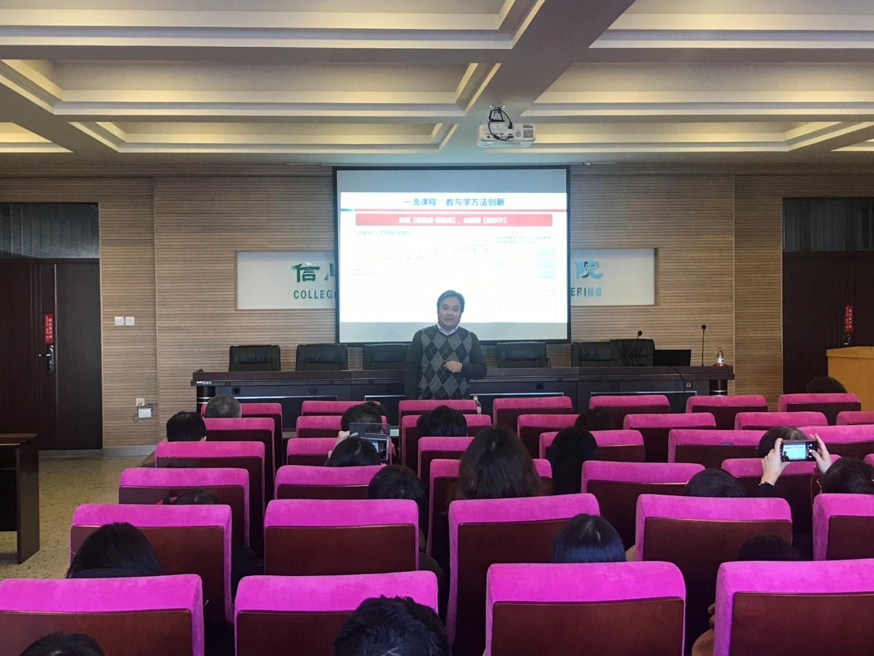 应太阳集团tyc151cc信息与计算机工程公司邀请,哈尔滨工业大学计算机公司教授、博士生导师、教学委员会主任、哈尔滨工业大学MOOC推进工作办公室主任、黑龙江省教学名师战德臣教授于2019年11月25日下午13:40在成栋楼1016学术报告厅做了题为“一流课程双万计划:理解与建议”的学术报告。该报告会由信息公司副经理李丹主持,全院教师积极参加和聆听了本次学术报告。报告会上战德臣教授对如何理解一流课程双万计划,什么是金课,怎样打造金课,结合自身多年从事慕课建设与应用的经验,从课程内容创新、教与学方法创新两个方面介绍了金课的建设方法。进一步解析了一流课程双万计划的精神和实质,阐述了关于一流课程标准与评价方面的认识,给出了迎评一流课程的建议。战教授结合大量自身教学工作经历,理性睿智、生动幽默、深入浅出细致讲述,让教师们获益匪浅,同时战德臣教授幽默儒雅的学者风范和严谨的科学态度也给大家留下深刻的印象。