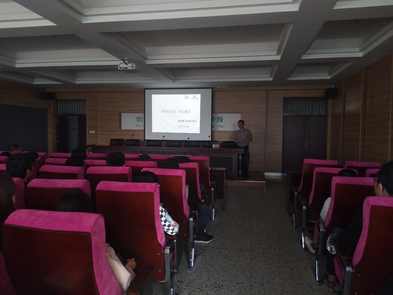 会议第二项景维鹏副经理进行了学科教育,介绍学科特点与优势、培养目标等学科相关情况。景维鹏副经理开展了“研究生生活,如何渡过”的主题讲座。讲座中希望各位新生可以明确自己的考研目的,强调在研究生期间不能再像本科学习一样完全依赖老师,要在三年中拥有综合分析问题解决问题的能力。在研究生的学习期间要不断充分的挖掘自身的潜力,不断的充实自己、完善自己、提高自己的科研水平,在不断提高自己学习能力的同时还要增强自己的人际沟通能力,并再次强调了学位申请、毕业论文、论文答辩等相关要求。