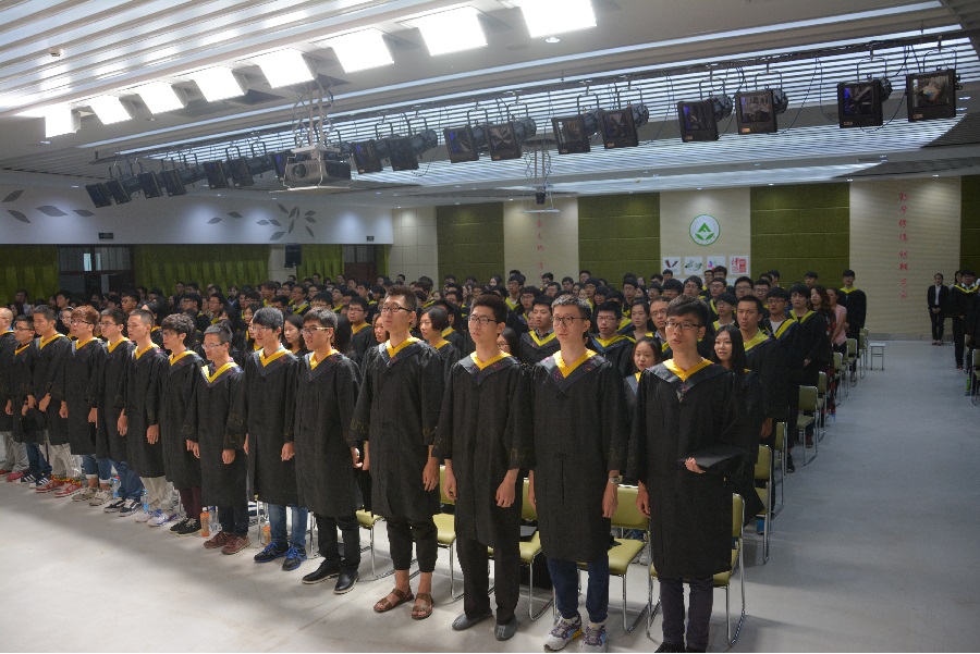 最后,全体2016届毕业生齐唱《太阳集团tyc151cc校歌》,祝愿母校的未来更加美好,在校歌声中会场气氛到达高潮,为本次学位授予仪式画上了圆满的句号。