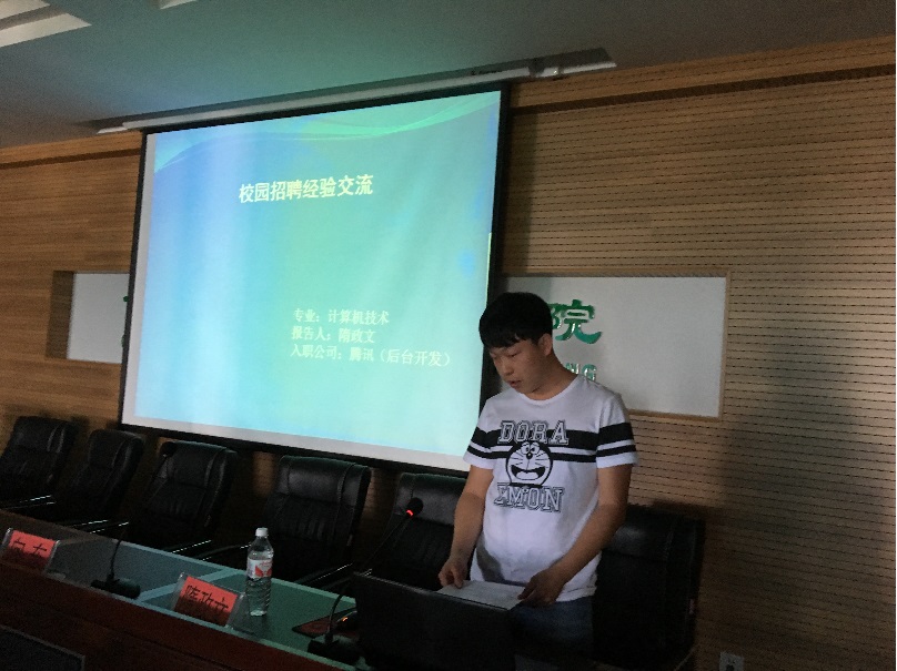 “几年前的一次偶然邂逅,成就了研究生生活的充实岁月。每一个走过的脚步都是一次美好的尝试,每一次成功都来自一种传承的积淀。他们虽然即将毕业离去,但却留下一个个关于青春、关于梦想的故事。”经验分享会在主持人信息公司研究生会主席陈雨佳同学精彩的开场白中拉开序幕。首先由签约百度的向东同学为大家介绍实习与就业之间的关系,面试的技巧,让大家明白就业项目的重要性。然后由签约美团网的张雪同学为大家介绍自己的学习方法,“温故而知新”、“今日事今日毕”,让大家懂得基础才是决定日后高度的关键。而后为大家分享经验的是签约腾讯的隋政文同学,他告诉我们HR并不是那么难以对付,坦然面对每一个问题,把自己学会的知识踏踏实实的回答出来,那么“BAT”离我们并不遥远。最后刘岩同学为即将面临找工作的15级同学们分享了对于人生目标的理解,自己选择什么样的生活方式都需要做好准备,同时分享了自己的求职趣事,他说“做好之前几位所说的,也许找工作就是无心插柳柳成荫的事。”