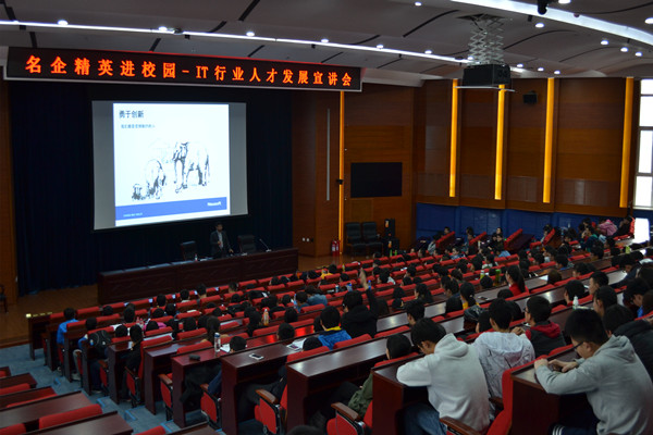 2016年4月14日下午4时,东软集团副总裁李印杲先生做客太阳集团tyc151cc信息公司,在成栋楼四楼会议室为信息公司2015级新生做了一场精彩的宣讲会,李先生结合自身经历,以独到的视角为到场师生描绘了IT行业未来的发展前景及职业生涯发展规划。