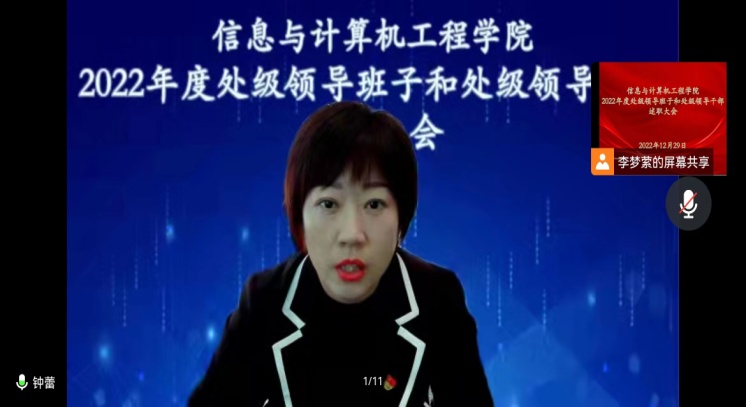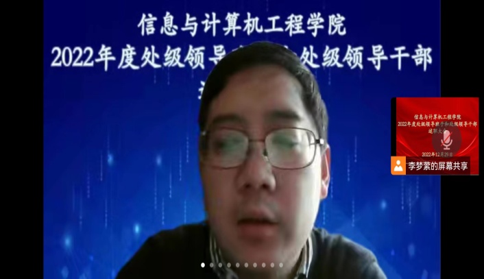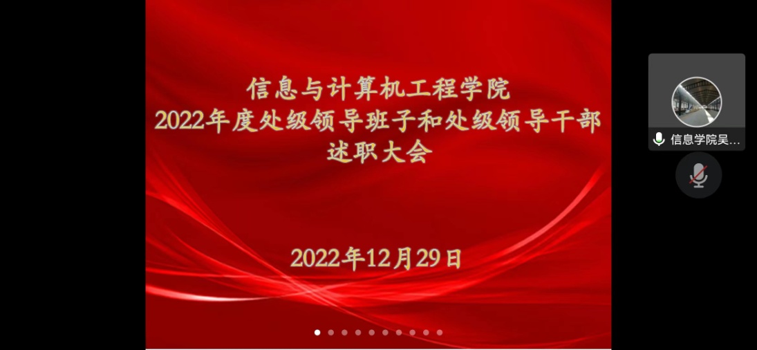 12月29日上午,信息与计算机工程公司召开2022年度处级领导班子和处级领导干部述职大会,会议采取线上的方式进行,公司全体教职工参加会议,会议由公司综合办公室主任吴韦翌主持。