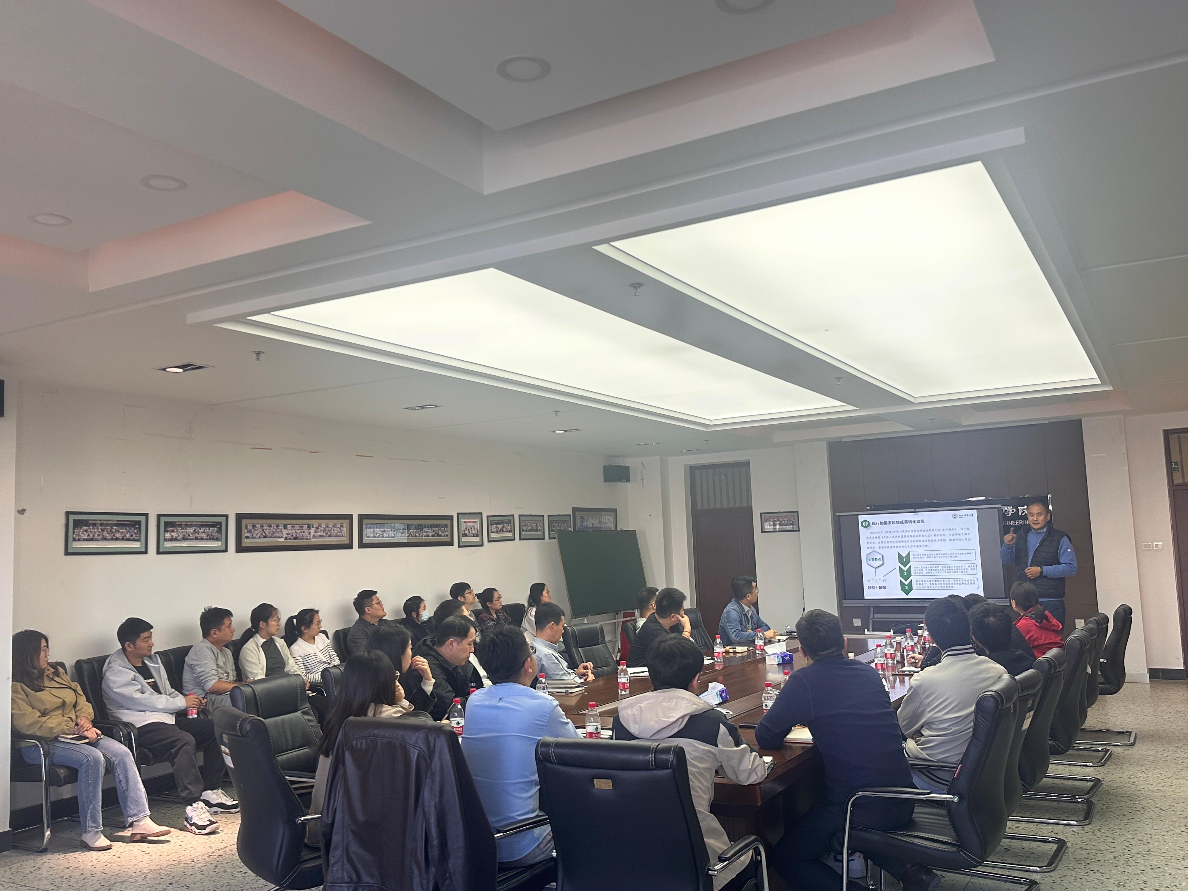 会上,姜经理从广义和狭义范围定义的科技成果及转化为切入点,着重说明了科技成果转化的重要性,向与会教师展示了公司近十年的科研项目及经费、高水平论文成果及公司的科技成果转化的基本情况,将现行的国家科技成果转化政策和公司科技成果转化管理办法中的要点进行详细解读。姜经理还将科技成果转化和横向项目的关系梳理清晰,为公司参会教师提供了科技成果转化的新举措和新思路。