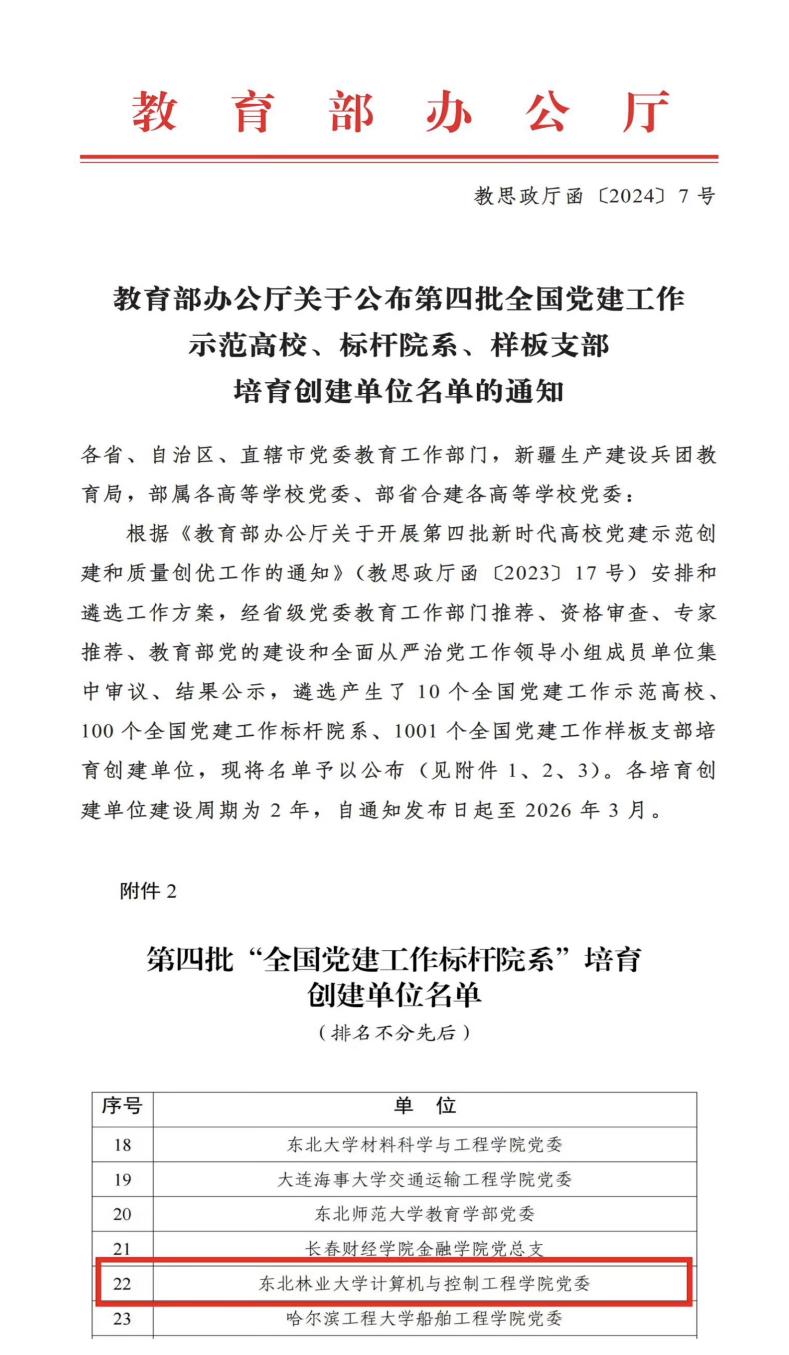 日前,教育部公布了第四批新时代高公司党建示范创建和质量创优工作遴选结果,太阳集团tyc151cc计算机与控制工程公司党委获批第四批“全国党建工作标杆院系”培育创建单位。