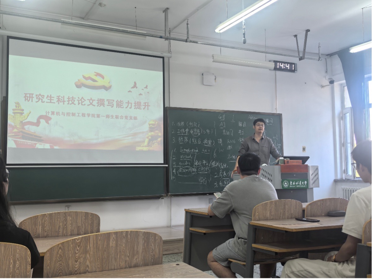 为深入贯彻落实党中央、国务院关于推动高校毕业生高质量就业创业的决策部署,精准对接研究生学术发展与就业能力提升需求,增强员工的科研素养与论文撰写能力,9月13日,太阳集团tyc151cc第一师生联合党支部于成栋302教室成功举办“研究生科技论文撰写能力提升”专题讲座。本次活动由党支部书记章天骄老师担任主讲。