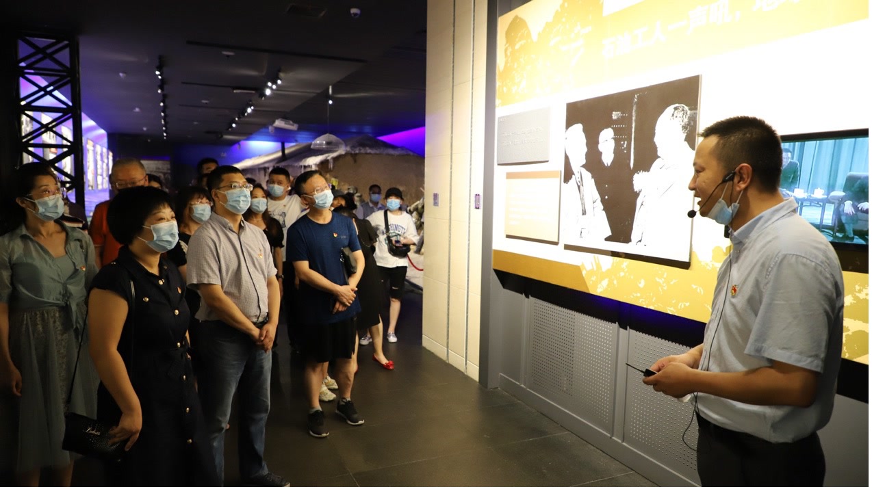 当讲解员用富有磁性的声音喊出“石油工人一声吼,地球也要抖三抖。”“有条件要上,没有条件创造条件也要上。”“宁肯少活二十年,拼命也要拿下大油田。”……这些铁骨铮铮的口号时,大家眼前浮现出了那个石油大会战年代,铁人王进喜带领工人跳入泥浆、人拉肩扛的奋进场景,在场的老师无不为之燃情,无不为之澎湃激荡。