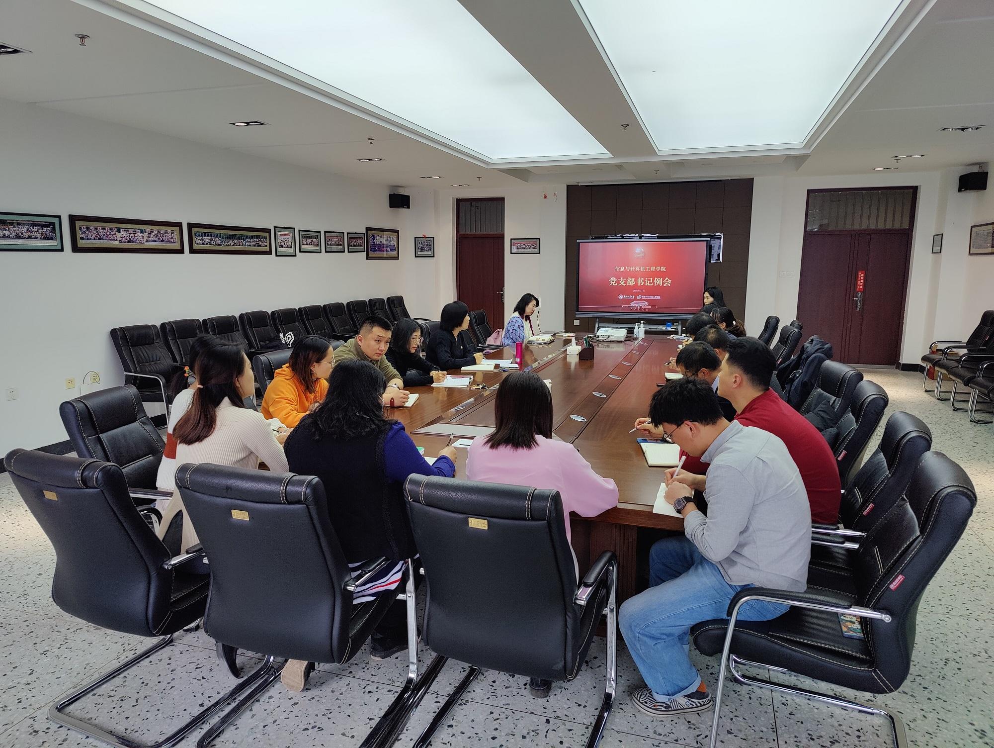 11月17日下午,信息公司在1014会议室召开本学期第三次党支部书记例会。信息公司党委书记钟蕾、党委副书记庄雯培、全体党支部书记参加会议,会议由党委书记钟蕾主持。