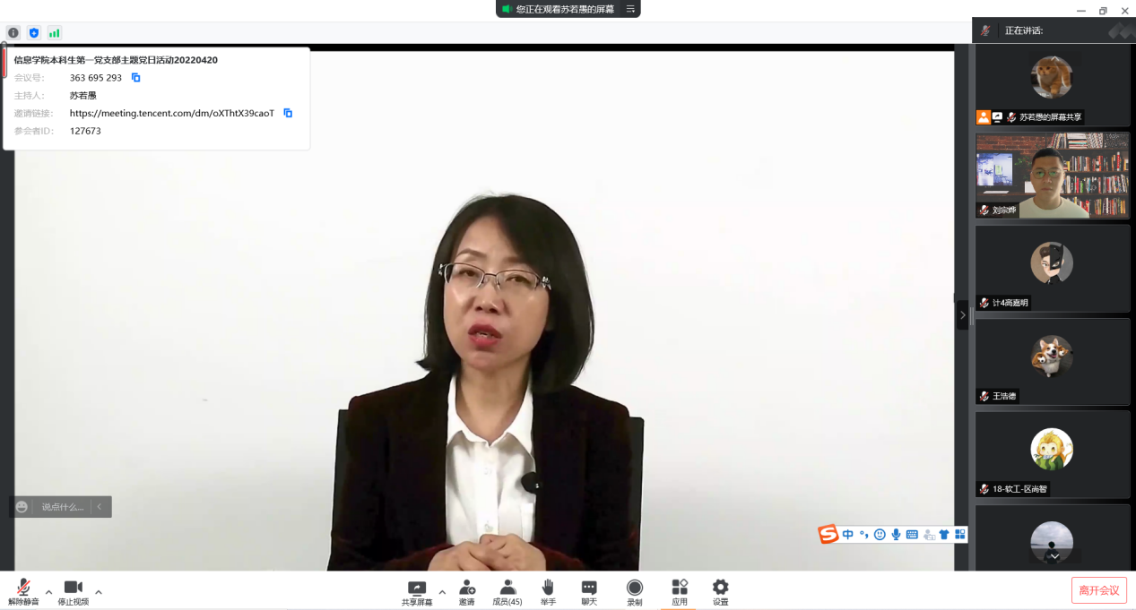 为深入学习领会党的十九届六中全会精神,引导全院师生深入学习领会党的十九届六中全会精神的丰富内涵和核心要义,20224209时,信息公司党委组织全院师生线上集中观看“党的十九届六中全会精神宣讲——走进校园”直播活动信息公司全院教职工线上集中开展政治理论学习,员工党支部采取线上线下方式参与学习。