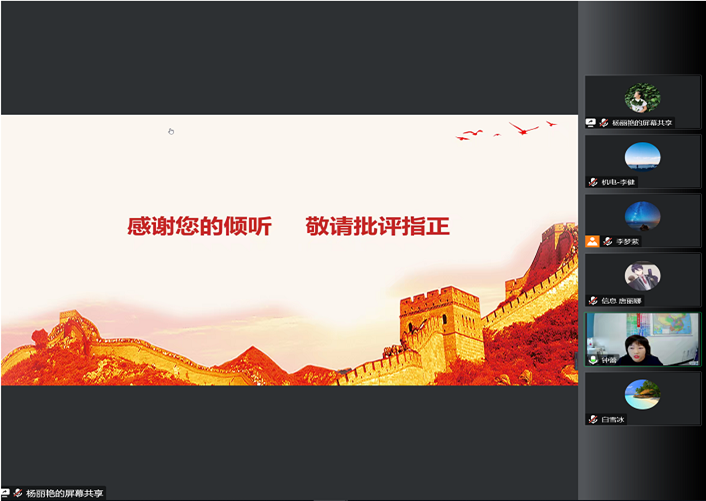 杨丽艳教授指出,党的二十大是我们走过了百年辉煌历程之后,在全党全国各族人民买上全面建设社会主义现代化国家新征程、向第二个百年奋斗目标进军的关键时刻召开的一次十分重要的大会,具有重要的意义。杨教授从全面把握党的二十大的主题和主要成果,全面领会党的二十大提出的新思想新论断、作出的新部署新要求,全面落实党的二十大精神做好教书育人工作三个方面做了全面的讲解。
