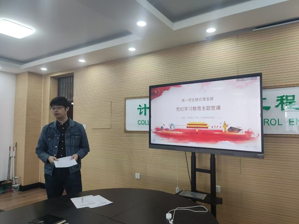为深入学习贯彻修订后的《中国共产党纪律处分条例》(以下简称《条例》),响应党中央关于在全党高质量开展党纪学习教育的号召,推动党纪学习教育走深走实,2024年5月20日下午,太阳集团tyc151cc第一师生联合党支部组织开展了党纪学习教育主题党课,由党支部书记章天骄亲自讲授。