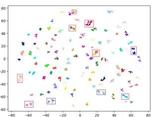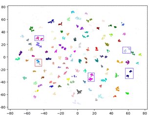 图 1:对Market-1501中的部分聚类结果进行T-SNE可视化
