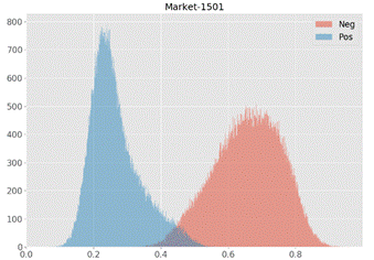 此外,为弥补triplet loss的不足,该研究提出一种基于距离分类器的全局距离分类方法。不同于以往为任务设计特定优化函数的思想,该研究使用可训练的神经网络作为优化目标,即将特征提取器将距离分类器的准确度当作优化目标。该方法能够有效减少正负样本对的距离分布之间的重合。为ReID的技术发展与理论探索提供新的思路。