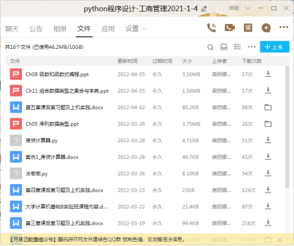 自2022年3月14日以来,为了防止疫情蔓延,校园采取封闭管理,所有课程教学转为线上授课,面对此次线上授课,“大学计算机基础课程组”达成共识,采用混合式教学,课前下发学习任务单,员工自学或预习准备,课中将线下授课改为云端授课,课后布置书面作业、拓展作业及下发拓展资料。面向全校部分文科专业的《大学计算机基础——Python程序设计》课程,依托超星泛雅平台+腾讯会议+班级QQ群,打造“云端课堂”,确保线上教学活动安全有序开展。