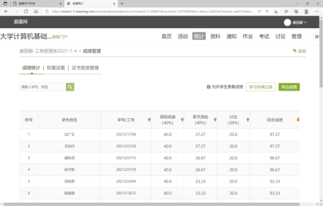 尽管因为疫情的原因,线上教学对教师与员工的直接交流产生了影响,但是 线上教学同时也使教学时间、空间不仅限于课堂上,网络的隐匿性优势提升了学 习主动性。平时比较内向的同学因为网络的隐匿性优势,变得敢于向老师敞开心 扉,主动和老师交流。课后员工可以通过各种平台与教师开展在线讨论,学习时 间和空间得以拓展。对于教师来说虽然教学及课程辅导工作量有所增加,但员工 的学习热情让老师更有工作动力,最终呈现的作业效果均能达到预期的教学目标。员工的学习热情高涨,平时成绩普遍较高。如图12所示。