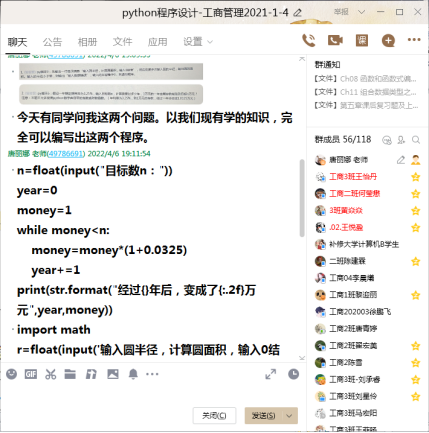 教师们利用教研室例会时间,通过QQ群,讨论课程开展过程中遇到的问题,讨论线上上课感受,相互介绍好的经验,取长补短。如图11所示。