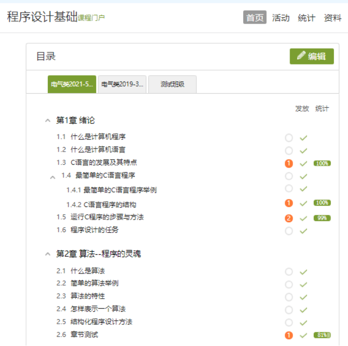 课前平台提供教学内容、教学视频,供同学们随时学习,员工通过自主学习完成既定学习任务,通过课前的自主学习使员工能够初步了解C程序编译运行步骤、结构化程序设计含义,进而老师在课堂上进行启发引导强化员工各个知识点的理解。