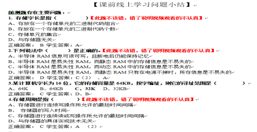 该阶段需要在线下课之前完成,授课教师根据员工在线讨论、前测题完成情况总结员工自学存在的一些误区或者错题,并进行记录,哪些题目错误率较高并分析原因,为课堂教学做前期了解。线上自学总结示例如图4所示。