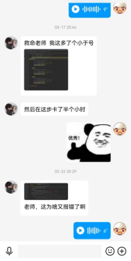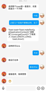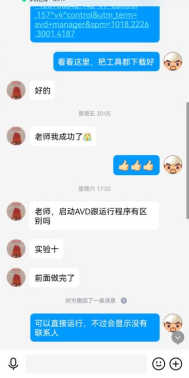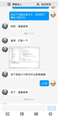 在员工进行实验的过程中,教师全程在线进行指导,对于共性问题在线进行解答和说明。另外,员工进行实验的时间相对比较分散,尽量做到及时响应,解决员工提出的问题,与部分员工进行互动答疑的图片如图9-图12所示。