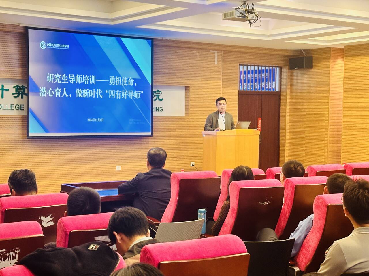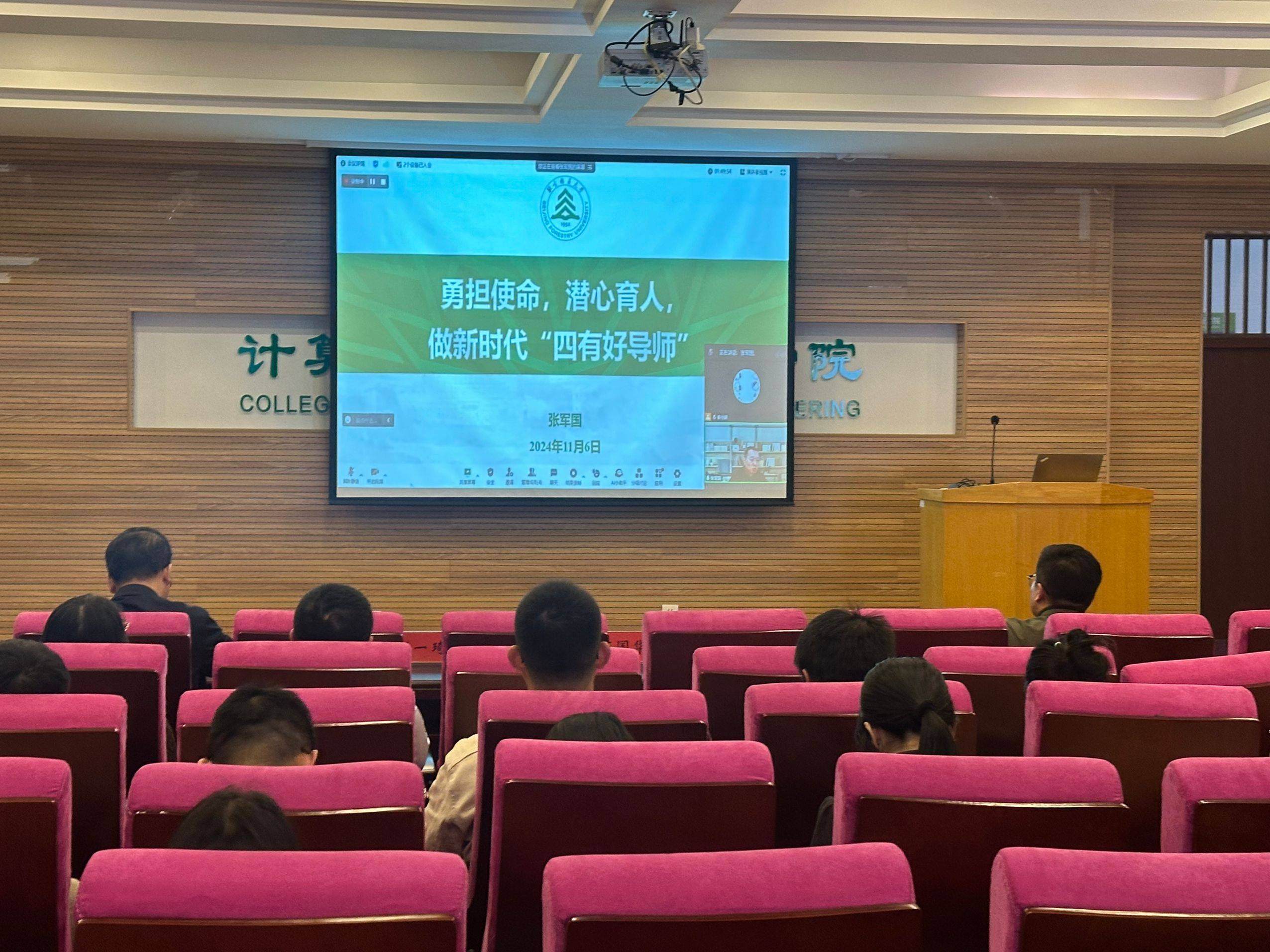 张军国教授作了题为《研究生导师培训——勇担使命,潜心育人,做新时代“四有好导师”》的培训讲座。张教授在讲座中从教学改革成果斐然、学术创新贡献突出、立德树人成效显著及个人深刻感悟体会四大维度,全面而深刻地展现了新时代导师的综合素质与使命担当。他结合自己的教育实践,深入探讨了如何涵养高尚师德、践行育人初心,并着重强调了潜心育人的重要性。张教授指出,作为一名新时代的研究生导师,不仅要具备深厚的学术造诣,引领员工在科研道路上不断探索,更要涵养高尚的师德情操,以身作则,成为员工品德修养的楷模。他分享了自己在师德修养与育人实践中的心路历程,强调导师要潜心育人,关注员工的全面发展,不仅要在学术上给予指导,更要在思想、生活等方面给予关怀与支持。张教授还倡导导师们要始终保持初心,矢志不渝地践行教书育人的神圣使命,为培养更多高素质、创新型人才贡献自己的力量。