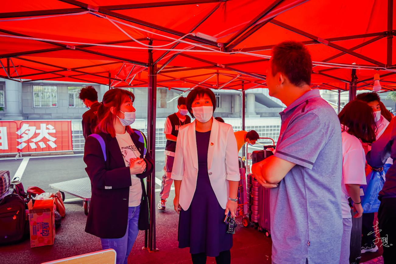 9月10日,公司党委书记钟蕾、经理汪国华、副经理景维鹏、副经理李丹、党委副书记兼副经理庄雯培来到迎新现场慰问迎新一线的教师和志愿者们,更是亲手接过新同学的行李、耐心解答他们的问题,每到一处服务站几位院领导都耐心指导工作,强调防疫工作,让公司整体迎新工作井然有序。