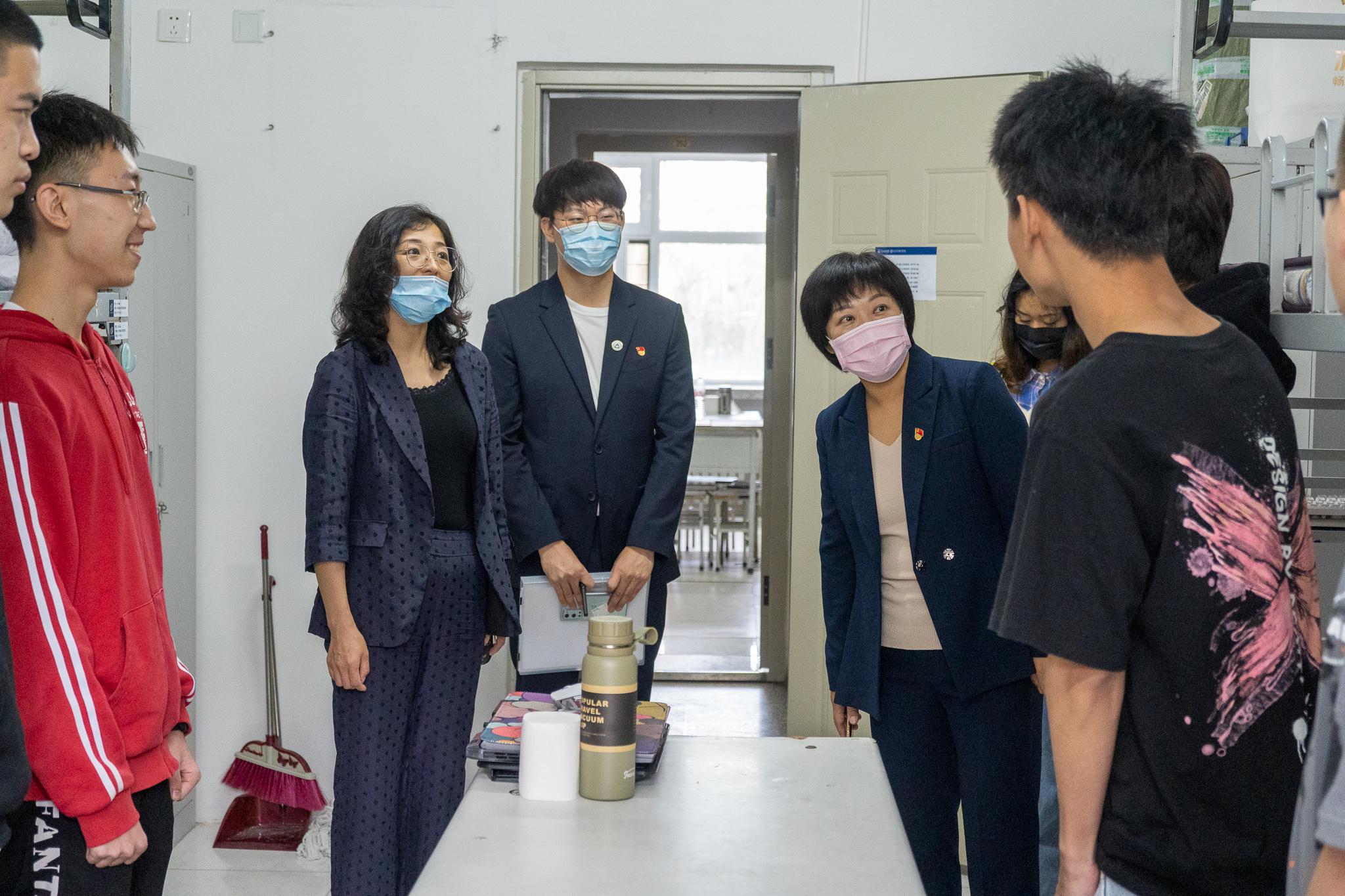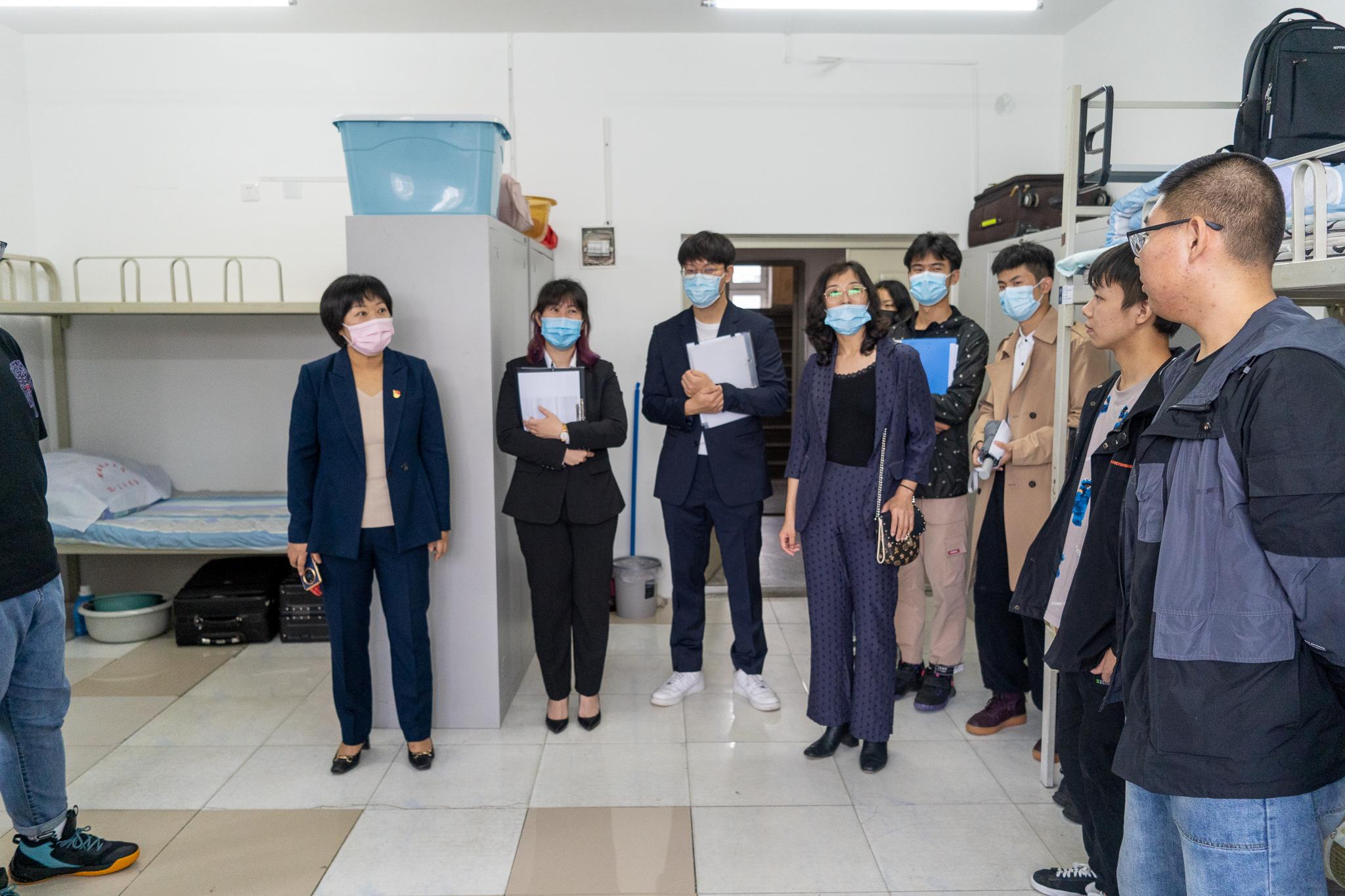 为深入了解公司2021级新生的住宿条件及生活情况,帮助新同学更快适应老员工活。信息公司党委书记钟蕾,党委副书记、副经理庄雯培,2021级辅导员张音老师、侯岚亭老师以及新生代理班主任于9月13日下午对新生寝室进行了走访活动。