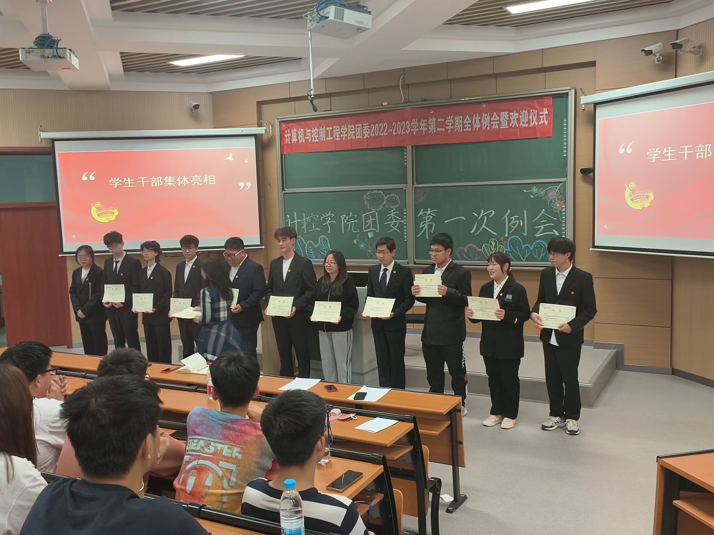 首先,由团委书记张音老师宣布新任员工干部名单,并简单介绍了双班制规则,让新加入的部员对团委员工干部体系有了透彻的理解。随后员工干部集体亮相,并由张音老师颁发聘书。