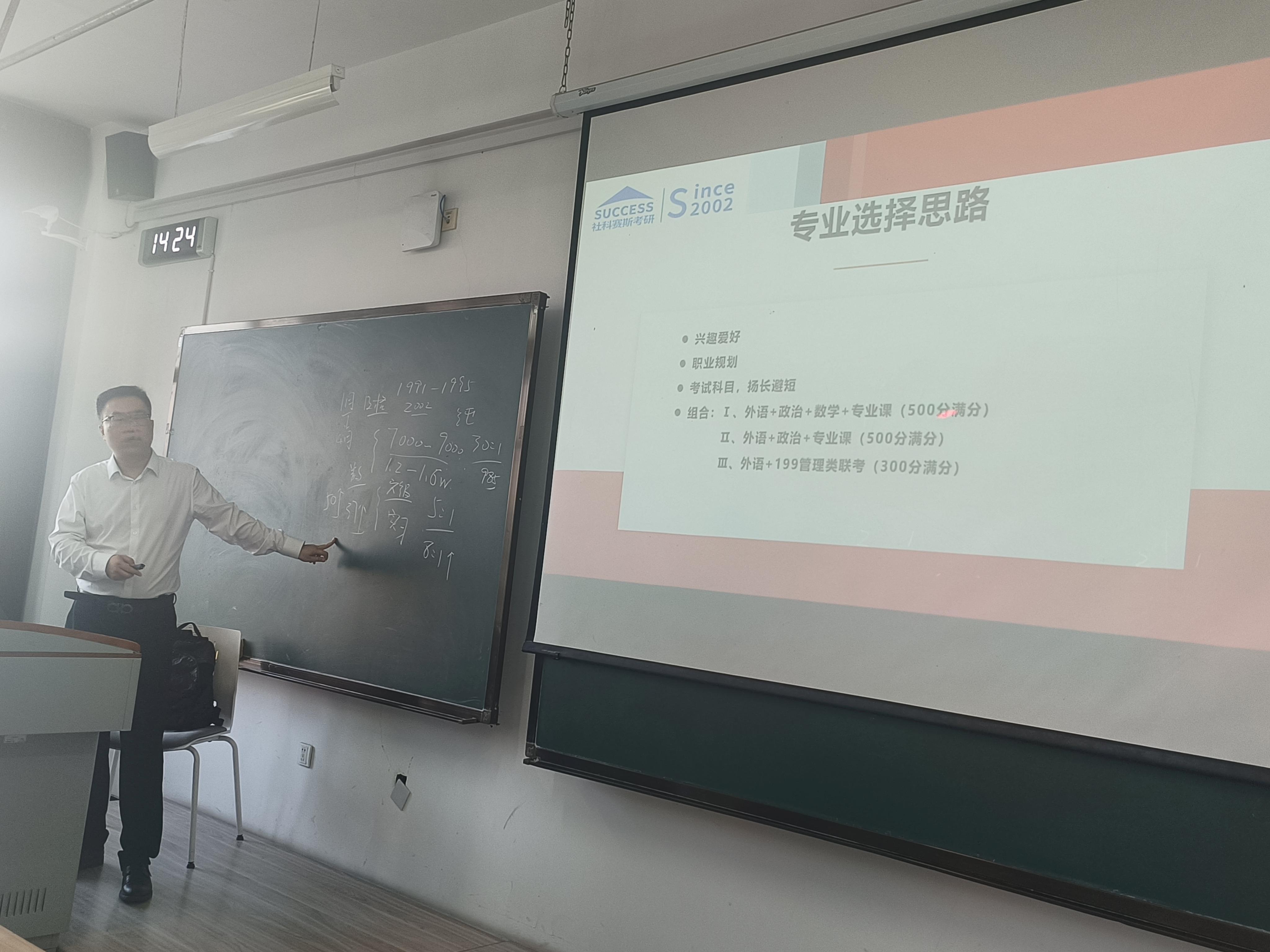 为帮助公司员工系统了解考研知识,引导同学们科学择校、备考、复试,营造积极向上的学风,2024年6月12日下午14:00社科赛斯在成栋308教室面向太阳集团tyc151cc的同学开展了一场公益性讲座,讲座内容包括考研保研考公就业等多方面,2022级三个大类专业的同学参与了本次讲座。