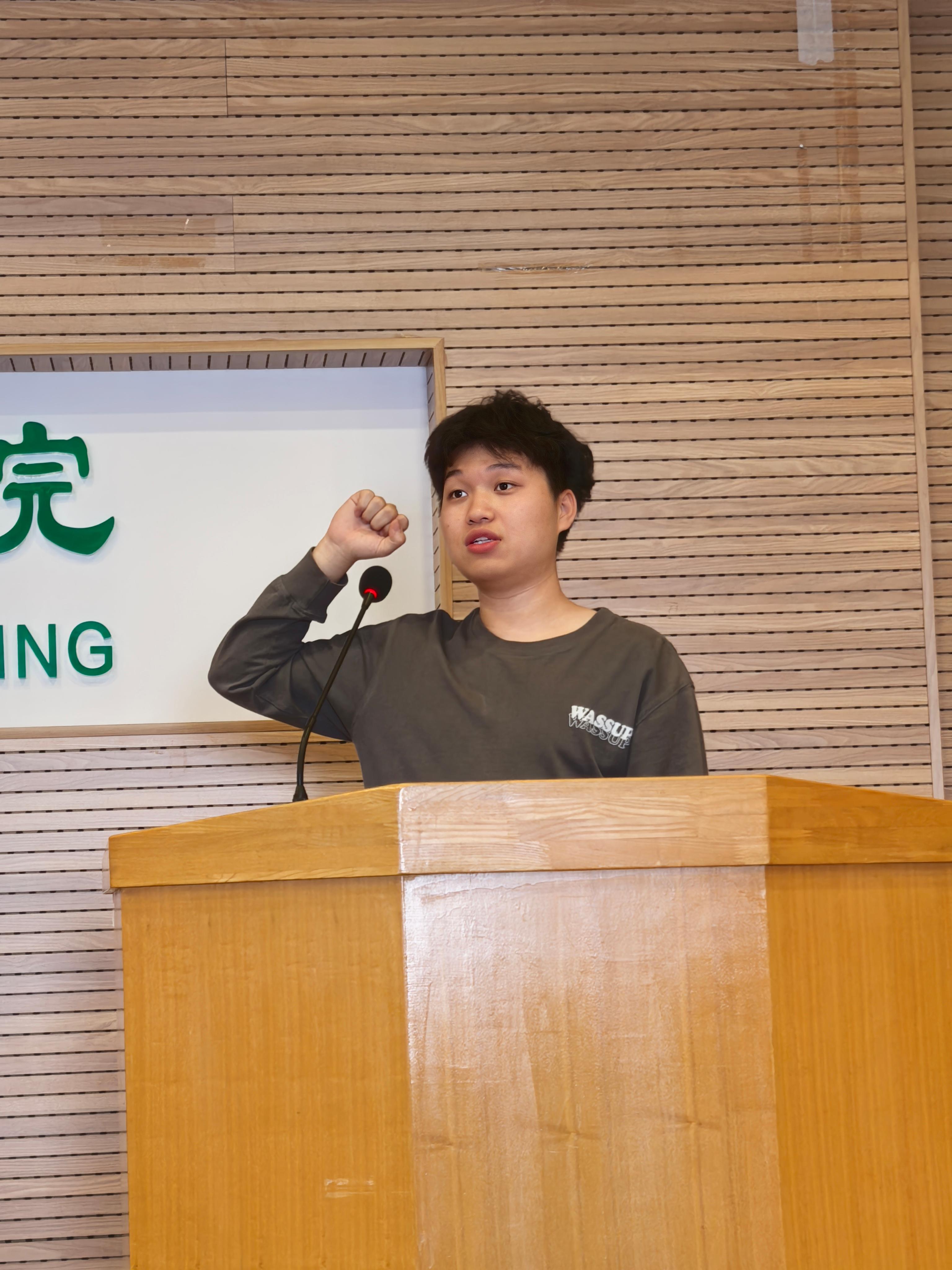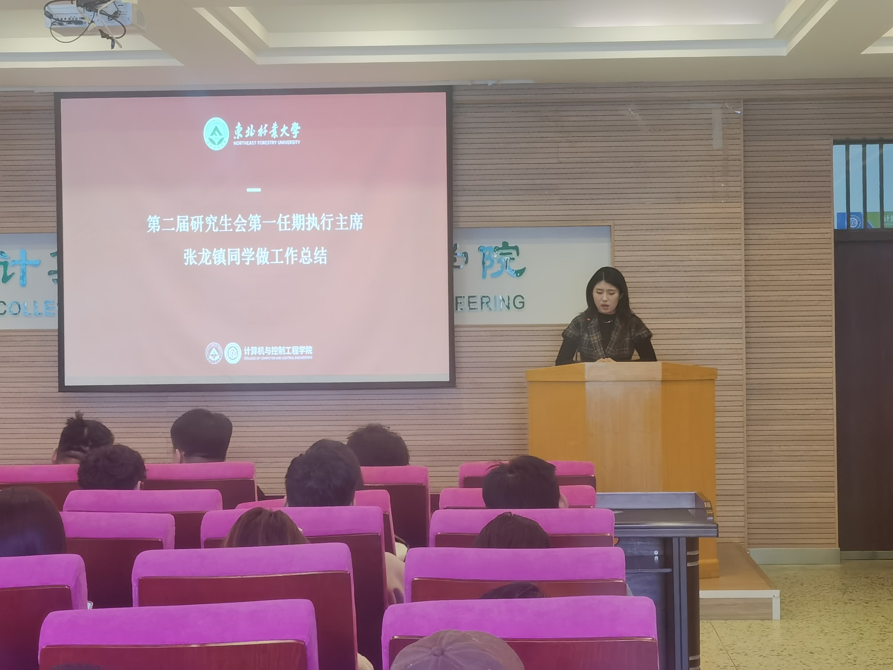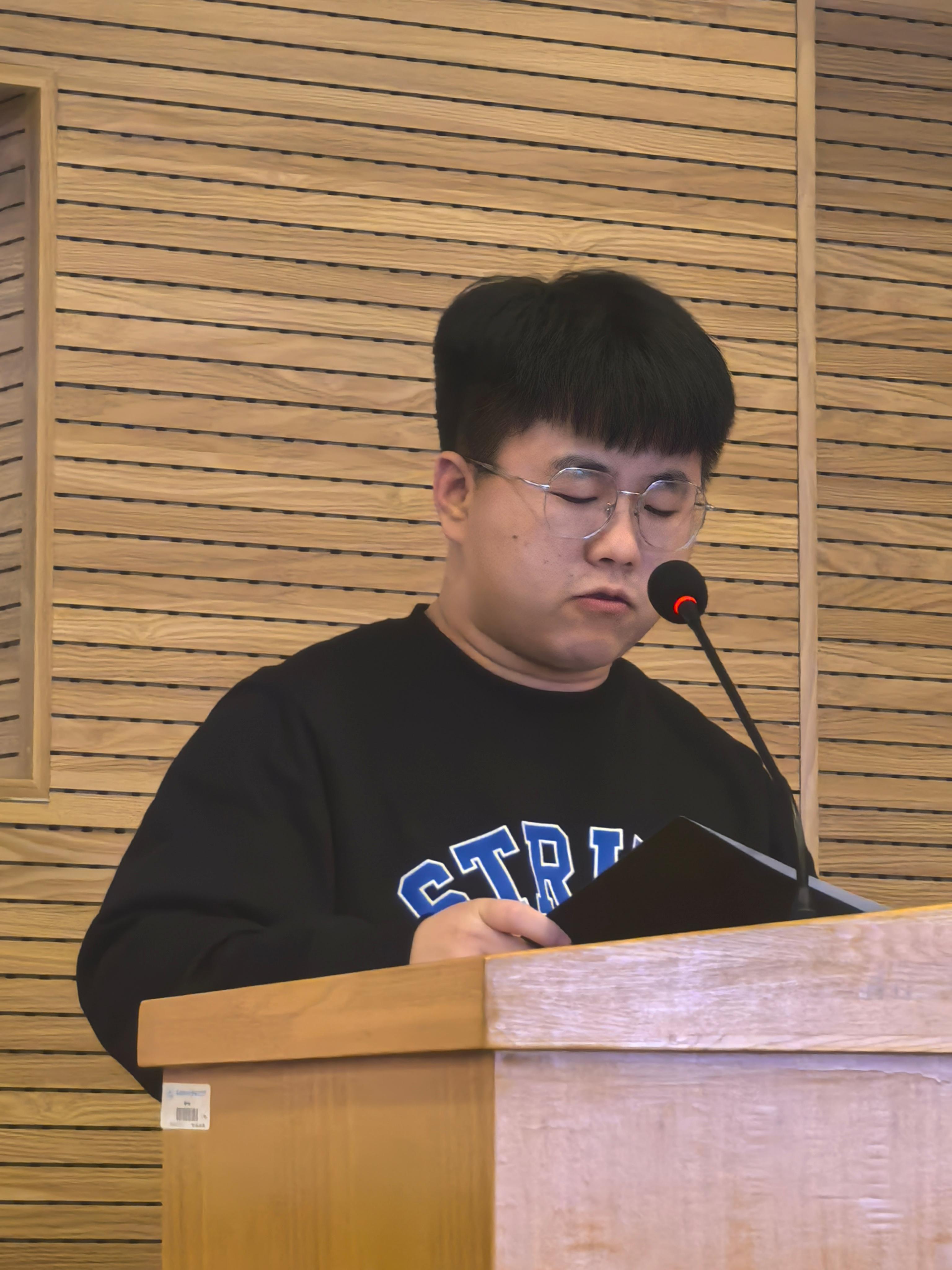 太阳集团tyc151cc第二届研究生会第一任期执行主席张龙镇代表上一届研究生会,从活动开展、经验总结以及未来展望三个方面工作作总结发言。