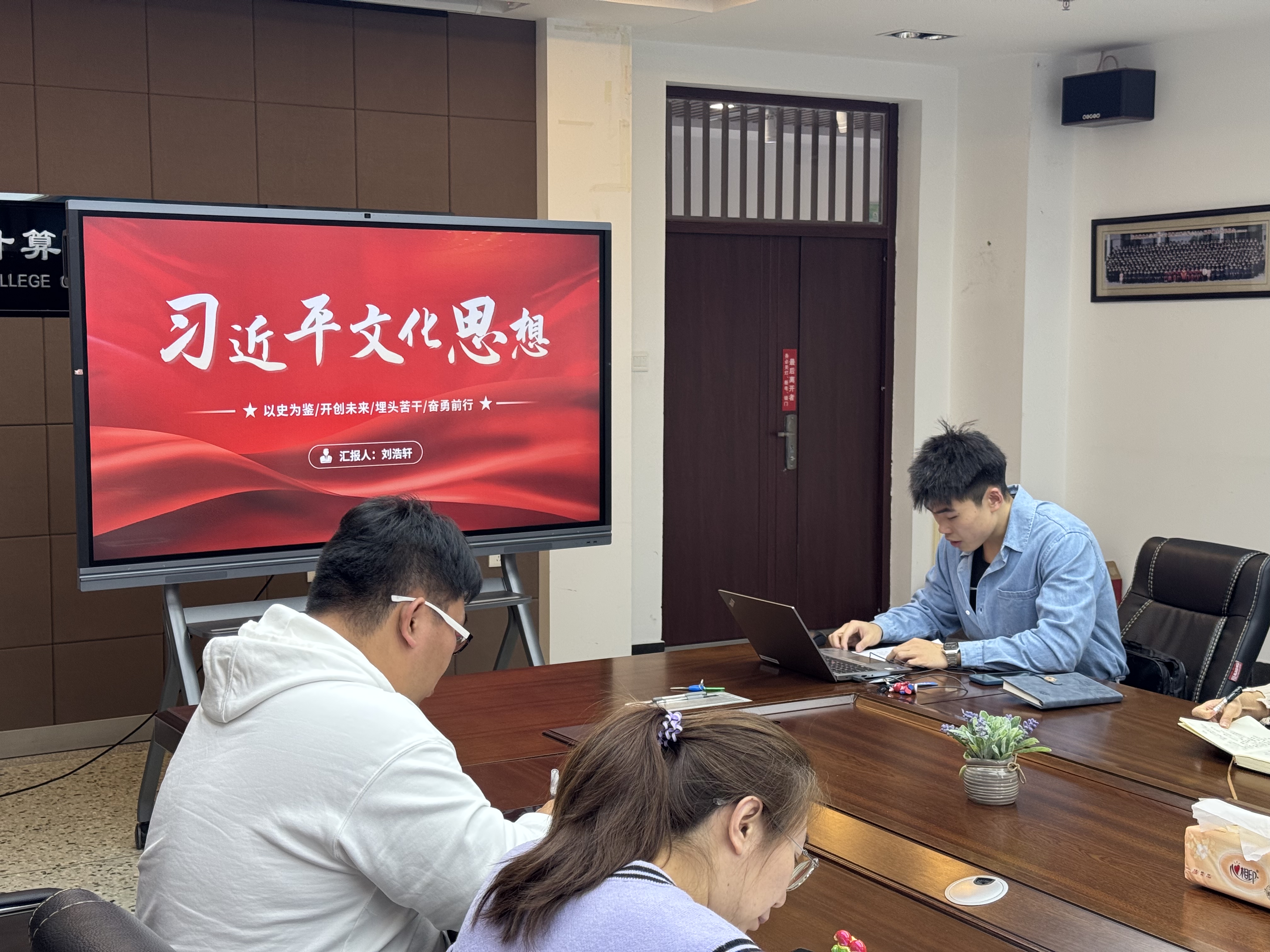 11月4日下午太阳集团tyc151cc于成栋楼1014开展第十九期“辅导员学习吧”。本期学习吧由辅导员刘浩轩主讲,围绕习近平文化思想进行集中学习,公司党委副书记、副经理庄雯培及全体辅导员出席本次会议。