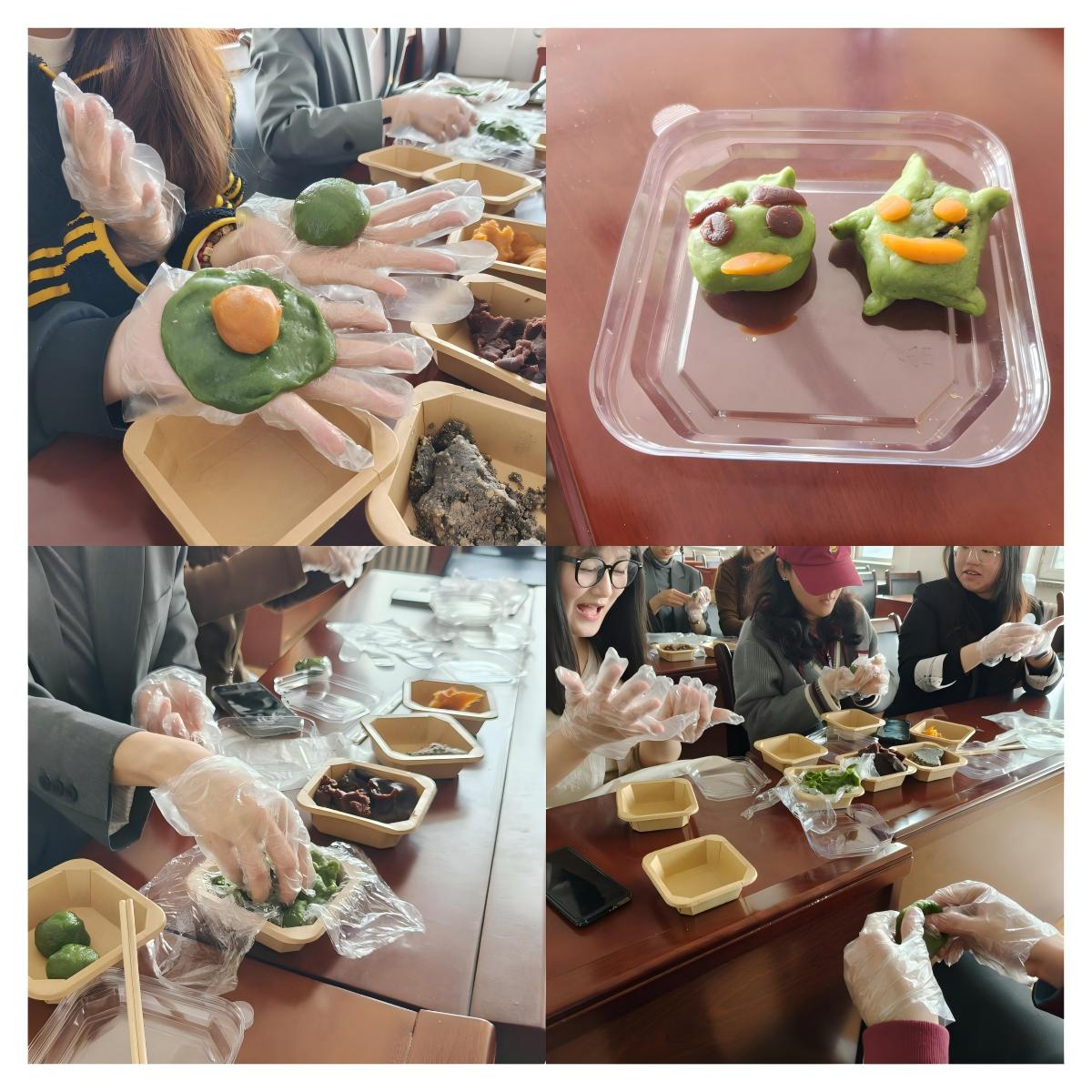 在青团制作环节,以小组为单位,同学们揉面、包馅、塑形,共同体验传统民俗的魅力。制作过程中,大家还观看了《长津湖》《觉醒年代》等红色经典影视片段,重温革命先辈的奋斗历程。