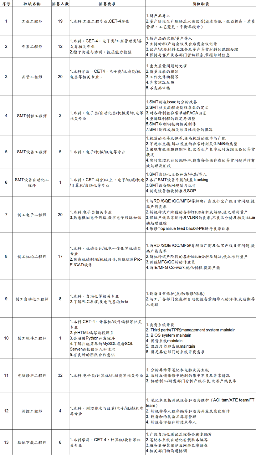 招募微信公众号:仁宝电脑招聘