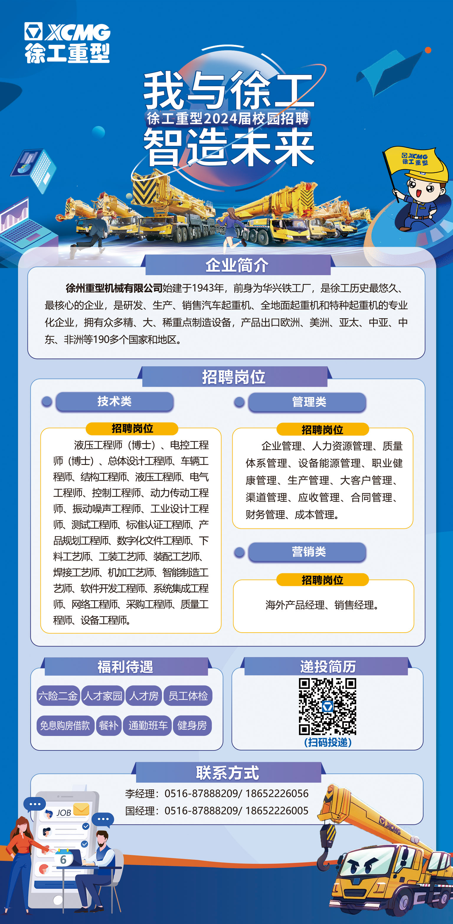 欢迎各位同学扫码投递简历,更多详情尽在9月20日(周三)19:00-20:30哈工大一校区员工活动中心227多功能厅宣讲会上(悄悄告诉大家,宣讲会上有惊喜礼品相送哦[嘿哈])如有需求可扫码加入东林群聊,也可联系李经理xzzp@xcmg.com。