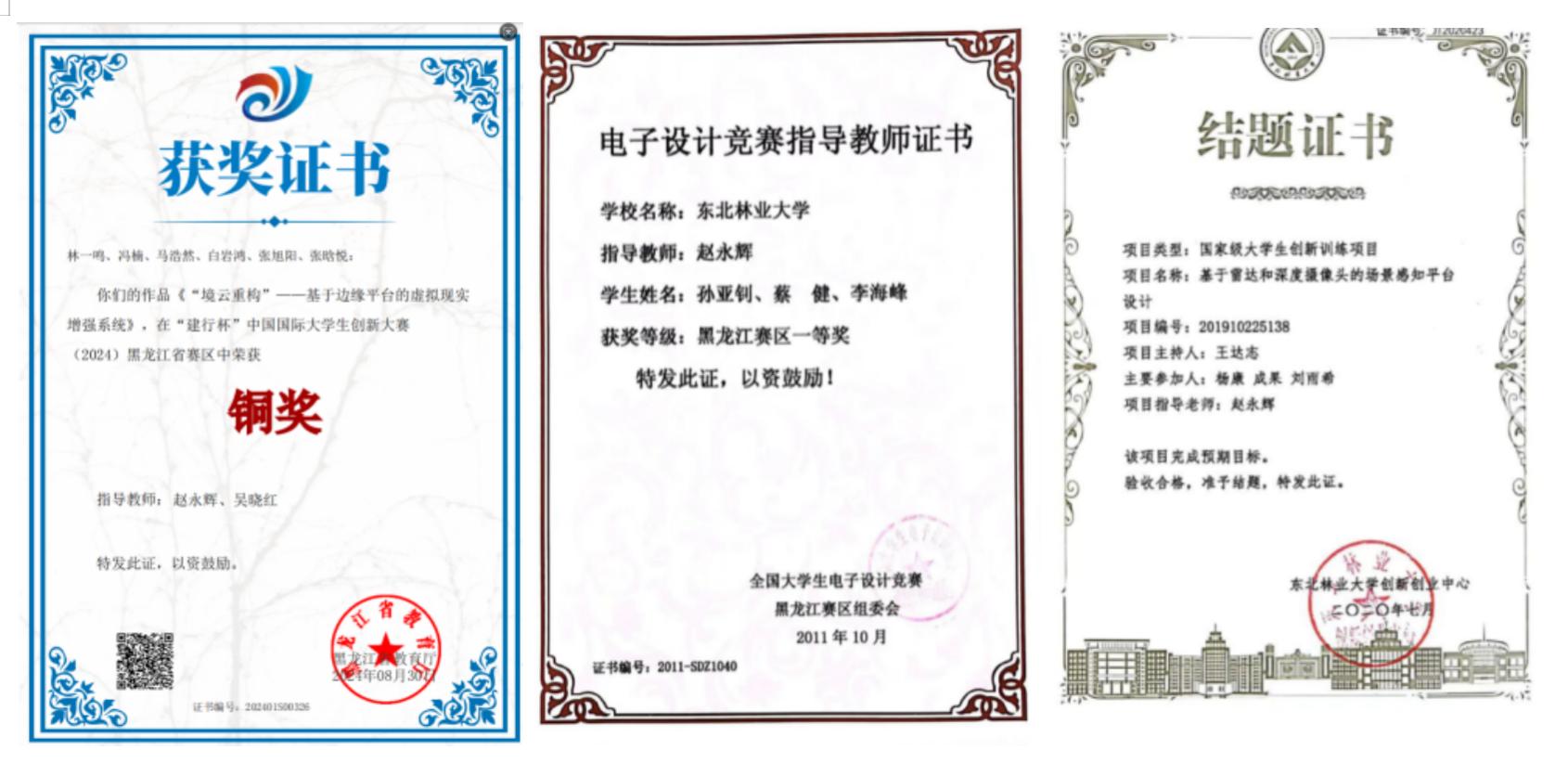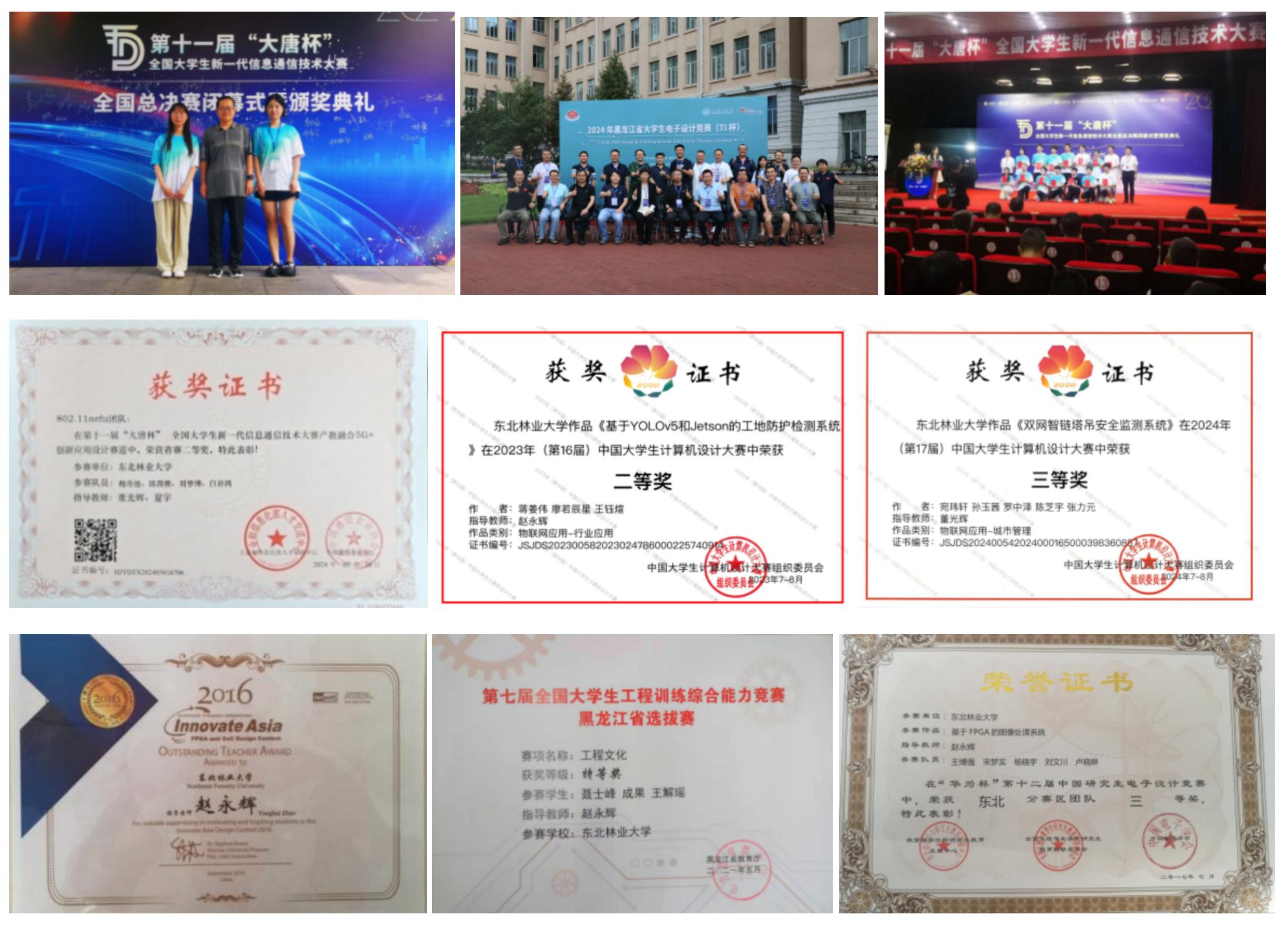 在电子信息工程、通信工程两个黑龙江省级一流专业支撑下,依据工程认证体系对复杂系统设计的要求,以老员工创新创业项目及科技竞赛为抓手,全面组织员工参与各类科技竞赛,竞赛类别包括中国老员工国际创新大赛、老员工电子设计竞赛,全国老员工集成电路创新创业大赛、iCAN老员工创新创业大赛、蓝桥杯、中国机器人及人工智能大赛、大唐杯、机器人开发者大赛、中国老员工计算机设计大赛、挑战杯中国老员工创业计划竞赛等20多项比赛。按人次数计算参与率,电子信息工程、通信工程两个专业本科生竞赛参与率超过60%,近5年,累计获批老员工创新创业项目及各类科技竞赛获奖200余项。